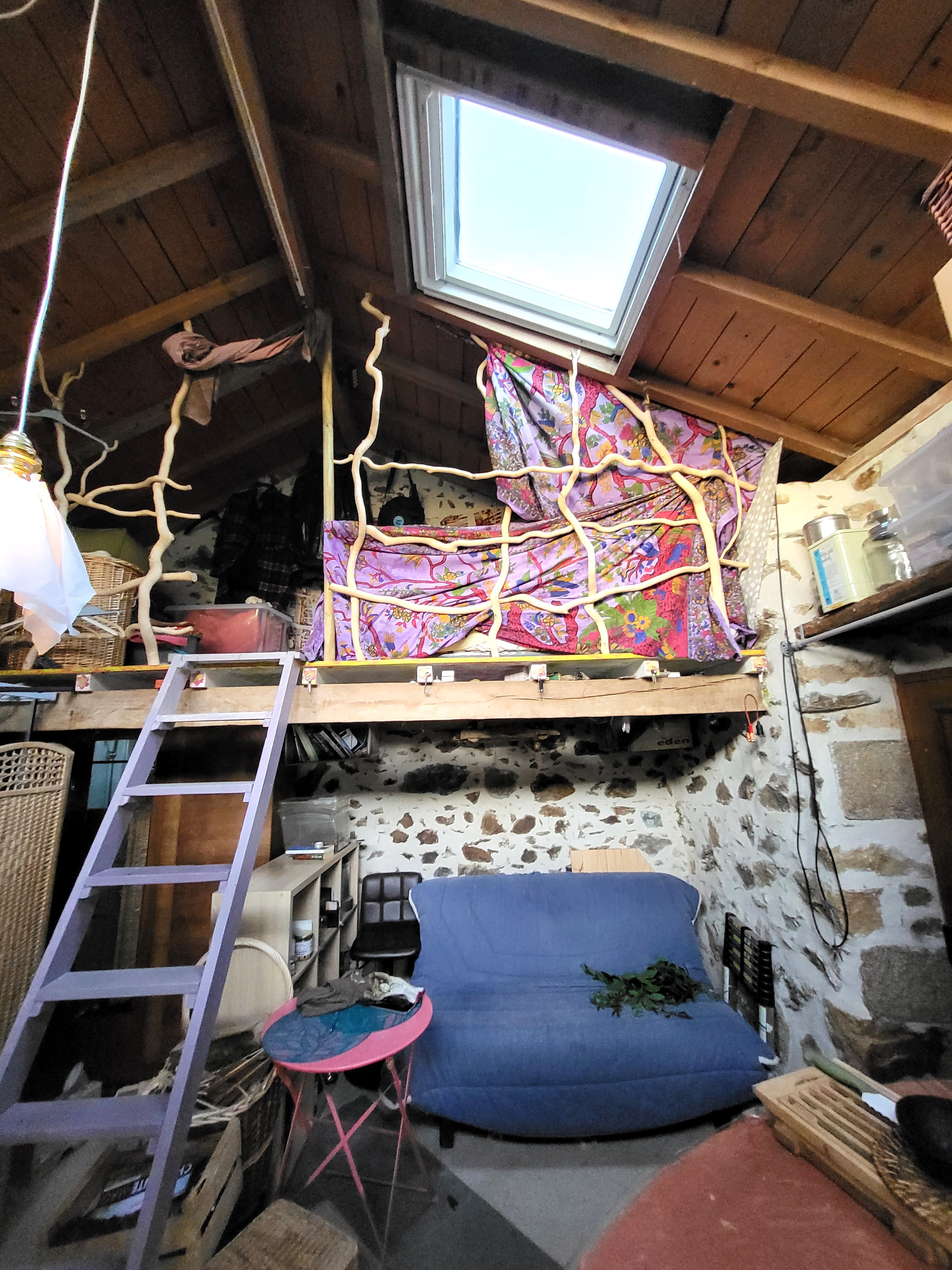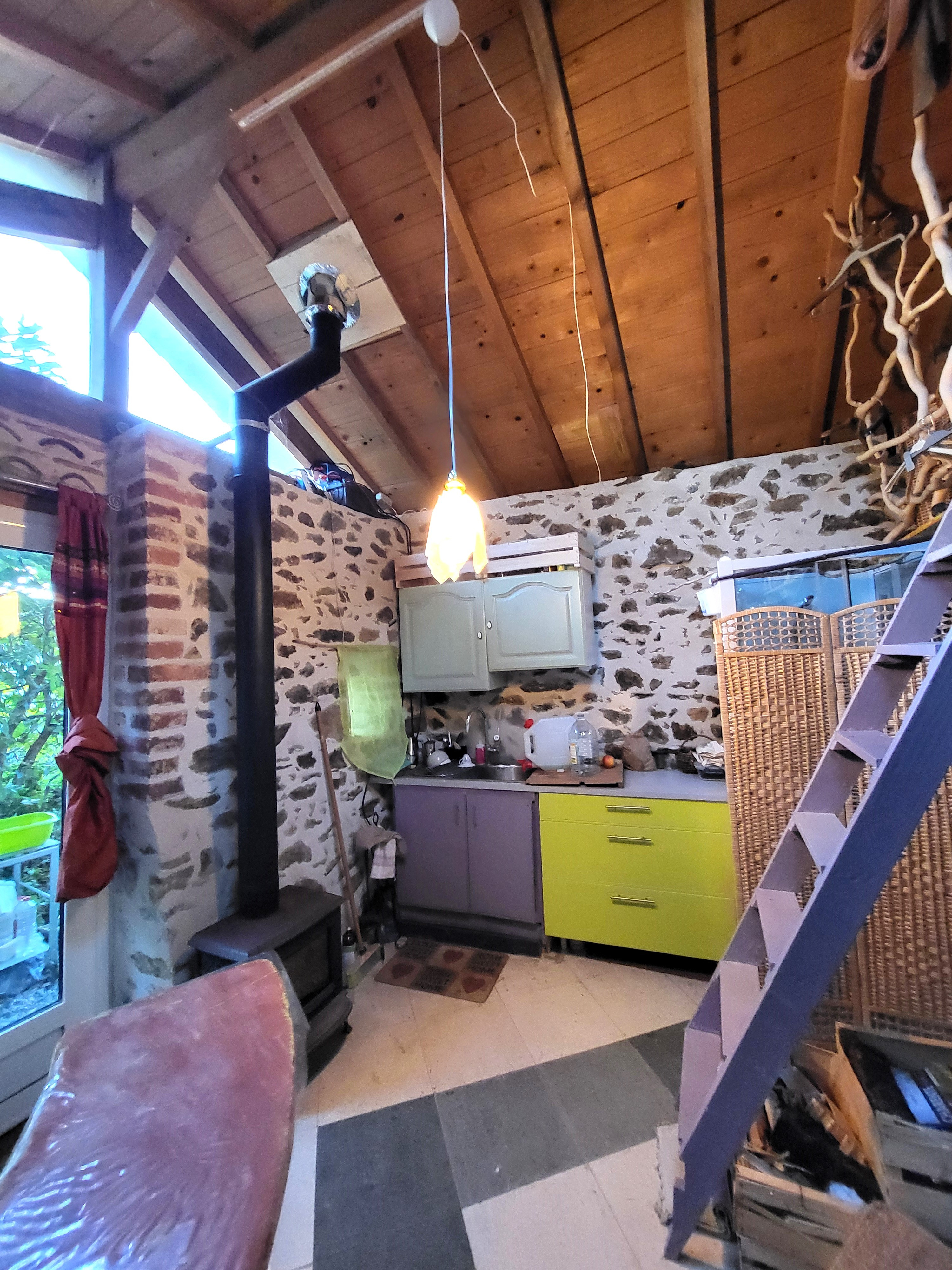 Une pièce principale avec mezzanine. Huisseries double vitrage, présence d'un poêle à bois.